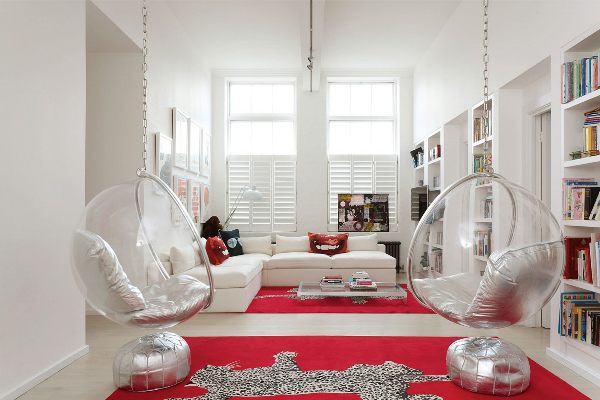 Качели можно разместить в гостиной перед телевизором или камином, создавая собственный уголок-антистресс. В спальне напротив окна, место отлично подойдет для утреннего чтения и созерцания улицы. Особенно эффектно качели будут смотреться напротив окон от потолка до пола. В детской качели можно повесить в игровой зоне.