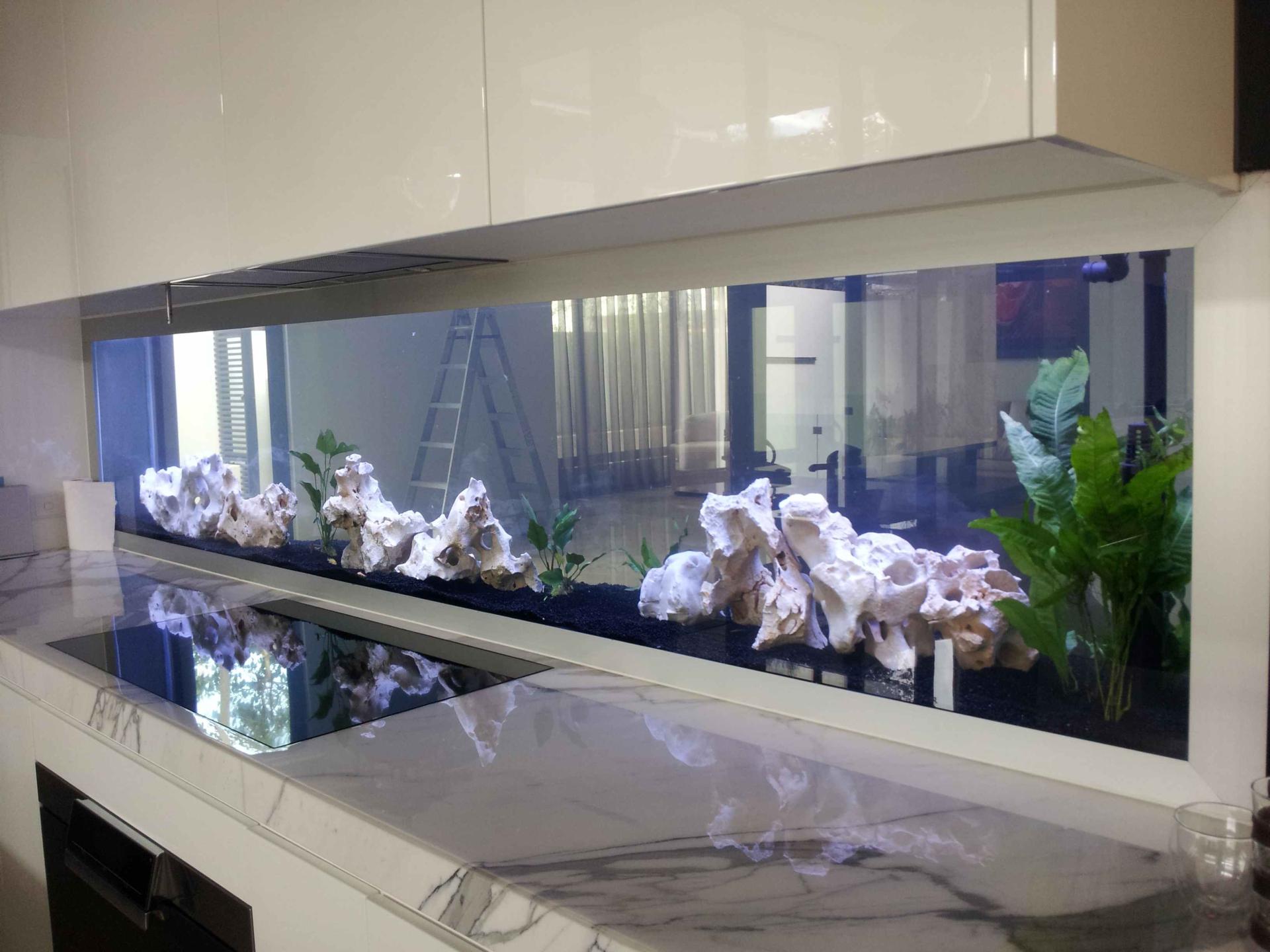 Очень красиво смотрятся настенные аквариумы, которые имеют небольшую толщину. Кто-то предпочитает выбрать такой вариант вместо телевизора. Такой аквариум дороже в несколько раз, так как для него невозможна обычная чистка. Пришлось потрудиться, чтобы разработать систему поддержания жизни внутри стеклянного резервуара.