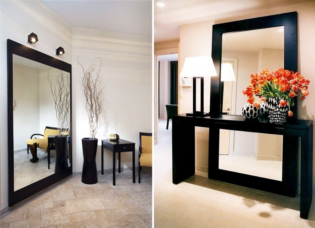 - Для небольшой комнаты можно подобрать большие зеркала. Они визуально делают помещение больше;