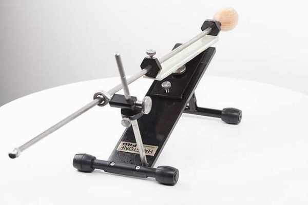 Есть механизированный вариант приспособления. В нем точильный брусок кладут на поверхность; лезвие ножа закрепляют в тележке под необходимым углом. Тележку перемещают вперед-назад, что способствует заточке ножа.