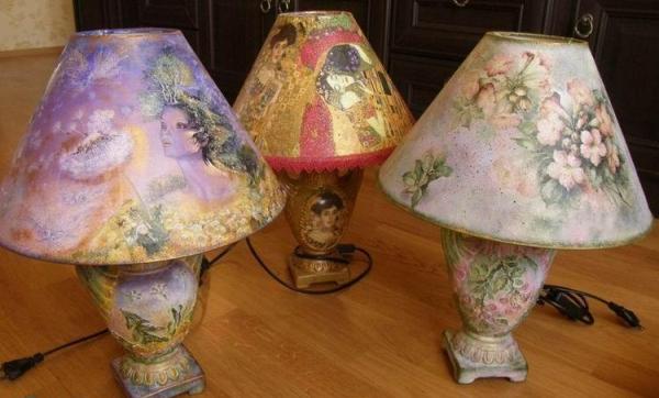 Просто обновить светильник, наклейками, декупажом. Они могут быть разными по форме, раскраске, исполнению. Используют, к примеру, гербы, флаги городов, стран, силуэты зверей, бабочек, знаменитых сооружений.