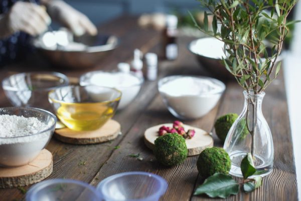 Сделать шарики, которые, попав в воду ванны, взбурлят ее и наполнят свежестью помещение, просто. Их изготавливают из ингредиентов, которые в большинстве есть в домашних аптечках, на кухне. Они делаются из морской соли, разных глин, сухого молока, лепестков роз, эфирных масел. Меняя количество веществ, можно сделать бомбочки под любой вкус, предпочтения.