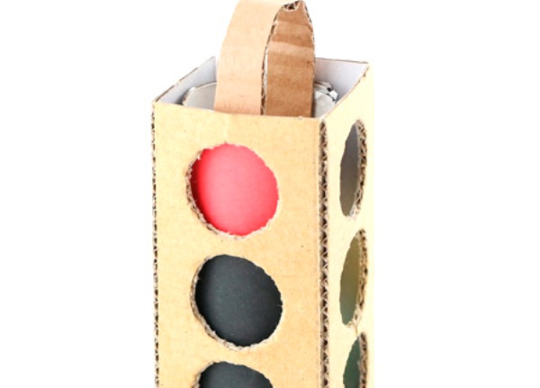 Сделать игрушечный светофор можно, используя электронные схемы; проще устроить его детали из картона, бумаги. Поделку изготавливают из: листа гофрокартона; цветной бумаги (черной, желтой, красной, зеленой). Пользуются инструментами: канцелярским ножом; линейкой; скотчем; клеем ПВА; карандашом; ножницами.