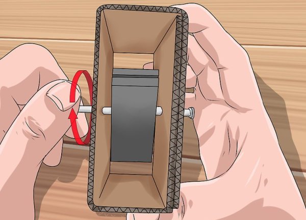 Через центр каркаса проводится металлическая ось, для этого используется гвоздь. В качестве оси может использоваться он же или другой металлический пруток.