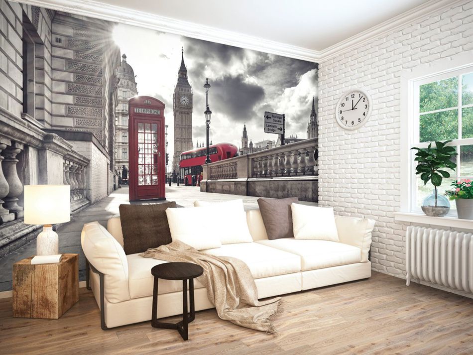 - Подойдут для любого стиля интерьера. Можно найти различные варианты оттенков поверхности, изображений, тематик. За счет этого подобрать фотообои можно абсолютно для любого интерьерного направления;