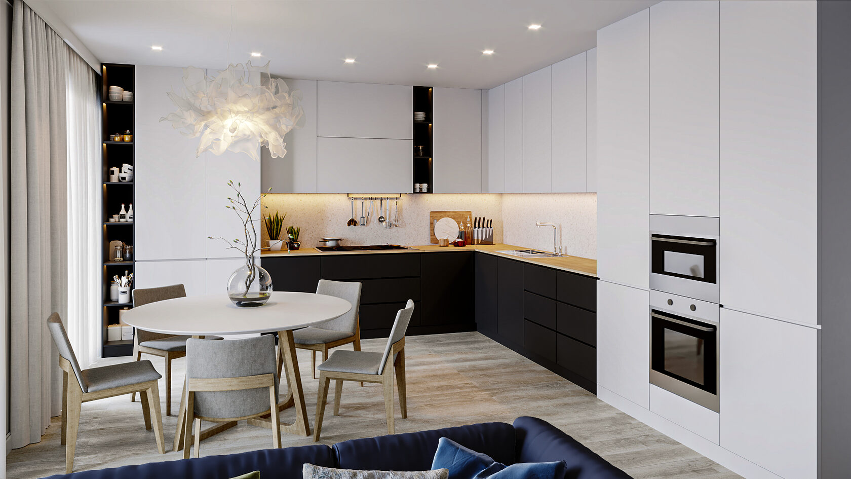 Если вы планируете устанавливать встроенную бытовую технику, то стоит заранее определиться с ней, чтобы подобрать размеры гарнитура.