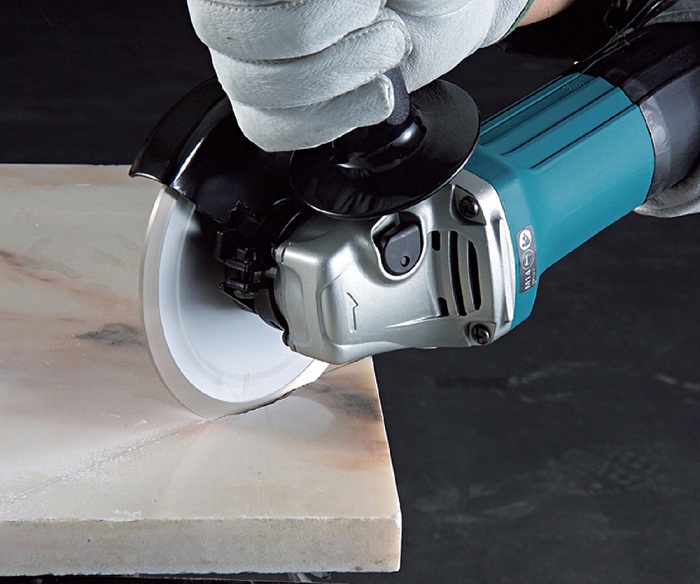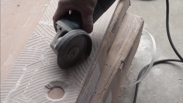 Далее начинается ответственная работа. С помощью диска болгарки шлифуют края отверстия. В итоге получится ровная в плане окружность, но по толщине плитки останется угол. Чтобы убрать его, плитку переворачивают тыльной стороной вверх и выполняют опять шлифовку грани по окружности.