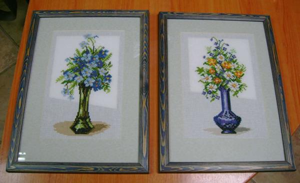 Рамку для вышивки покупают со стеклом, которое защитит изделие от загрязнения. Тон обрамления должен соответствовать тону вышивки; можно покупать рамку золотистого цвета, под дерево. Ее размеры должны быть немного больше, чем габариты вышитого рисунка.