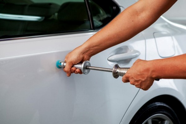 Кроме рычагов технология предусматривает использование вакуумных присосок. Ими, за счет разницы давлений, устраняются малые деформации. Есть в методе и аппликаторы, устанавливаемые на проблемное место на клей. Затем с помощью мини-лифтера устраняют вмятину.