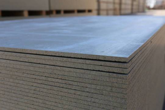 Типовые размеры — 3200×1250 мм, толщиной от 8 до 24 мм. Поверхность ровная, серо-светлая, допускается шлифовка для декоративных целей. Плотность материала составляет 1200–1400 кг/м³, что выше, чем у фанеры или ОСП. Прочность на изгиб достигает 9–12 МПа, что позволяет использовать плиты в конструкциях, испытывающих нагрузку.