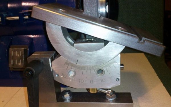 Еще один вариант приспособления содержит основание в виде пластины, в которой в средней части сделано V-образное углубление. В него укладывают сверло и прикрывают прижимной планкой. Обе детали стягивают зажимными винами. В таком устройстве можно закрепить сверла разного диаметра. Его для работы устанавливают под нужным углом на основание.