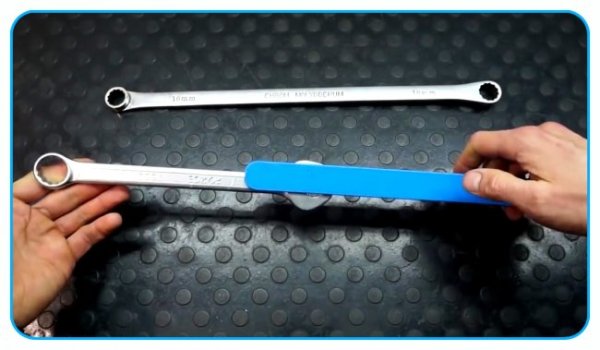 Откручивание старых, сильно затянутых гаек рожковыми ключами иногда создает проблемы. Приходится искать какие-либо удлинители плеча, чтобы выполнить работу. Но можно затратить определенное время и изготовить удлинитель, который будет всегда под рукой и поможет в дальнейшем в любой момент.