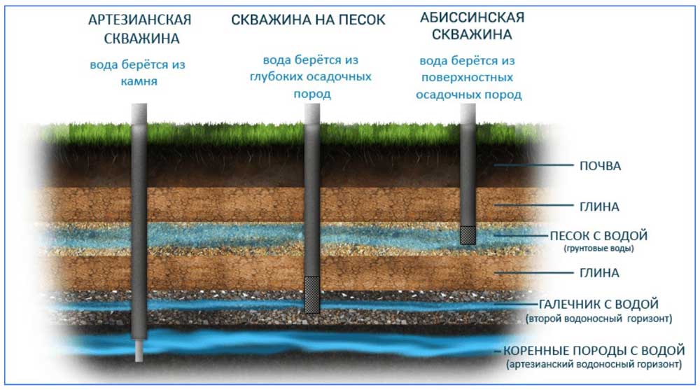 Какой тип скважины подойдет именно вам, нужно учесть основные характеристики каждый, плюсы и минусы. А также ориентироваться на основе ваши потребности. Вот основные отличия артезианской скважины и на песок: