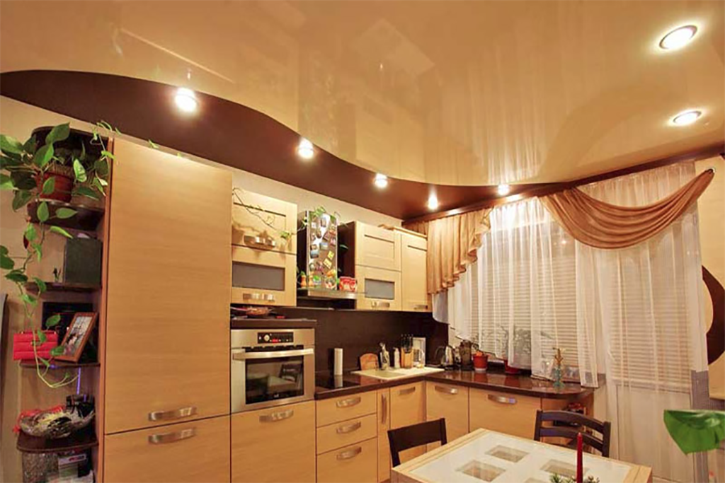 Натяжной потолок используется все чаще. Он отлично подходит для обустройства спальни, гостиной, детской комнаты. Но возникает вопрос: можно ли монтировать такой вид потолка на кухне. Условия в этой комнате сложные. Покрытие может подвергаться повышенной влажности, резким перепадам температур и так далее. Рассмотрим, подходит ли натяжной потолок для кухни, что важно учесть при выборе и монтаже пленки.