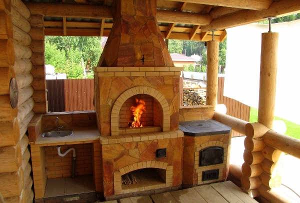 Печь-мангал – из элементов функционального оформления загородного участка. Устроенная под крышей, позволяет комфортно готовить шашлык в любую погоду, время года.