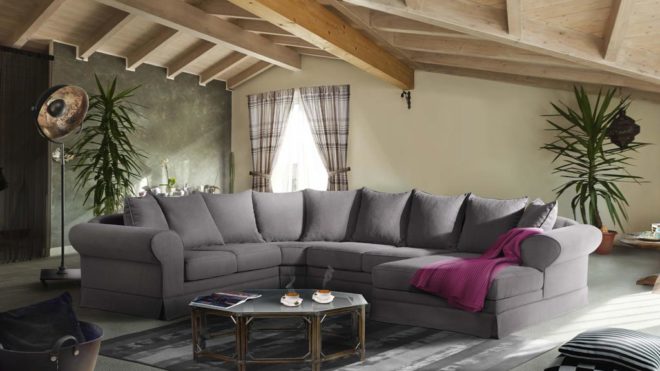 - Форма. Также нужно правильно выбрать форму мягкой мебели. Диван может быть прямой, угловой, П-образный и нестандартных форм. Классический вариант – прямой диван. Он смотрится стильно, подойдет как для просторной комнаты, так и для маленькой комнаты. Угловые компактные, при этом можно создать дополнительное спальное место. П-образные диваны выбирают для просторных гостиных, преимущественно в частных домах;