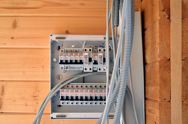 В полностью деревянных, каркасных деревянных сооружениях, по условиям безопасности, что связано с риском возгорания материала, применяется открытый тип проводки. На ней просто находить места неисправностей и ремонтировать. В сети легко добавлять дополнительные точки, разводку под них. В то же время, находясь на виду, сеть может повреждаться механически, иногда нехорошо выглядит, не вписывается в интерьер.